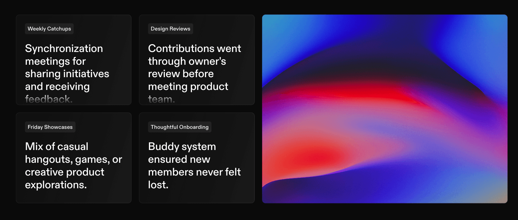 These were mostly on the operational side to bring structure—be it Figma files, presentations to stakeholders, handoffs, or a structured critique process.