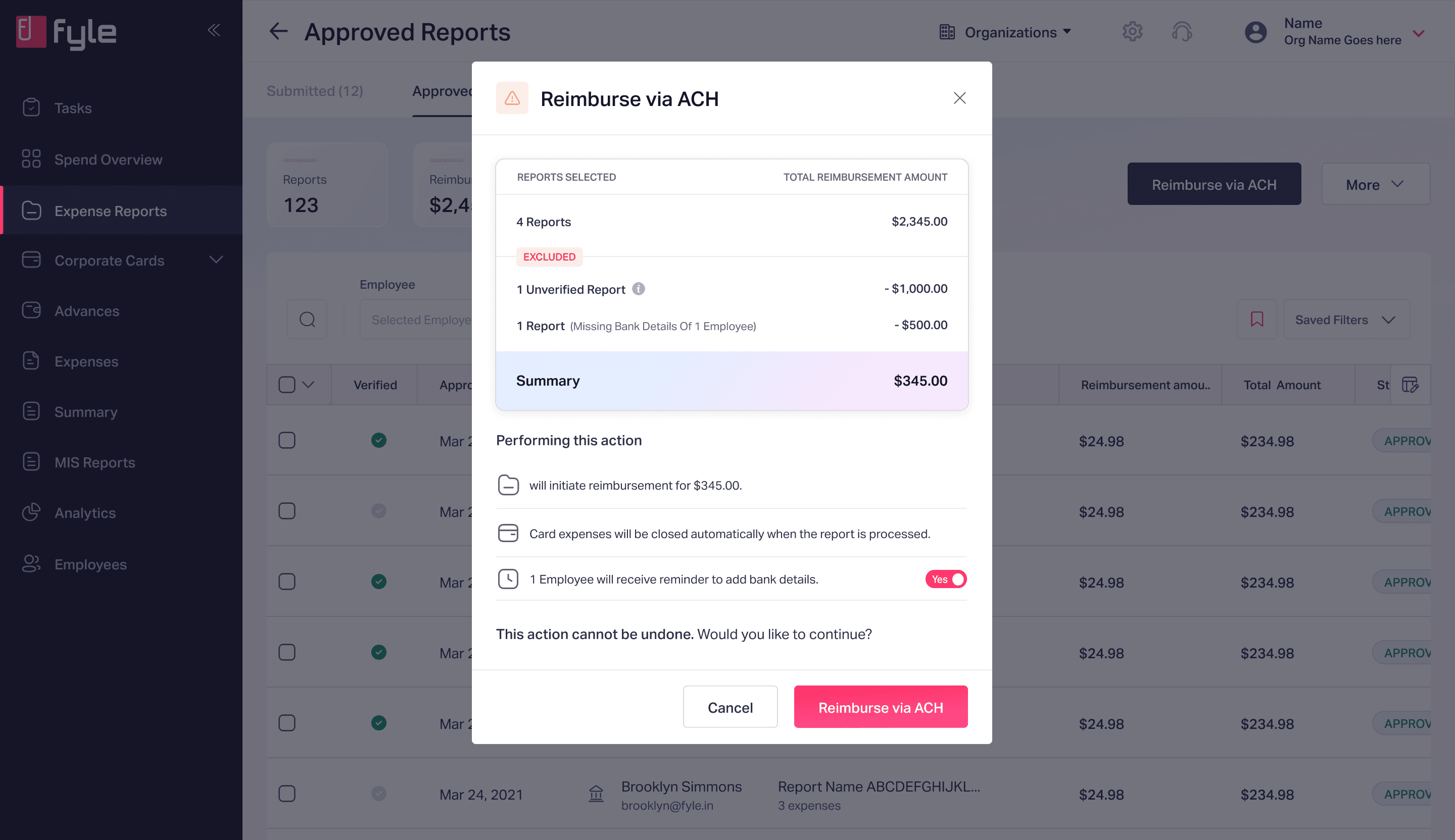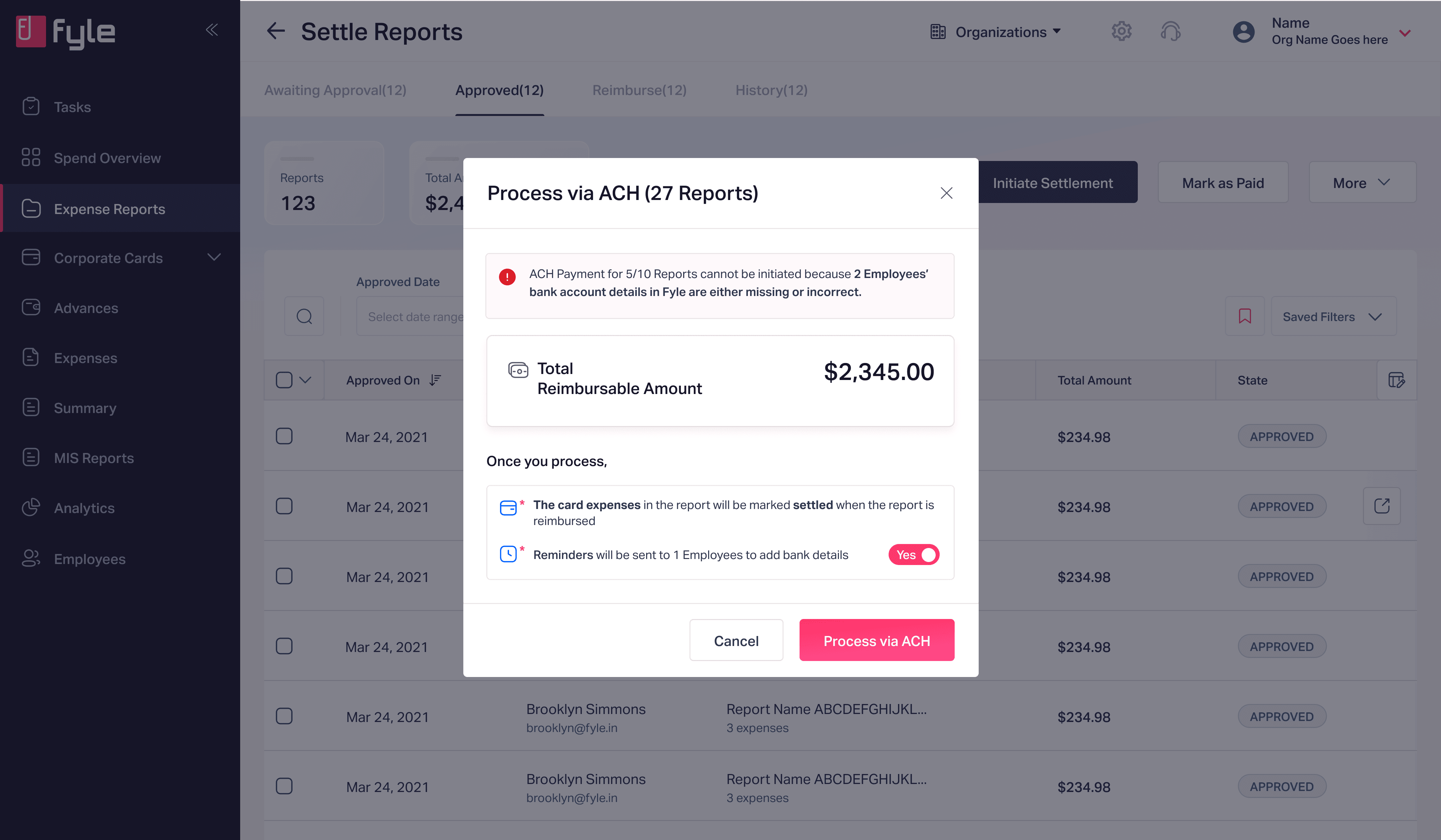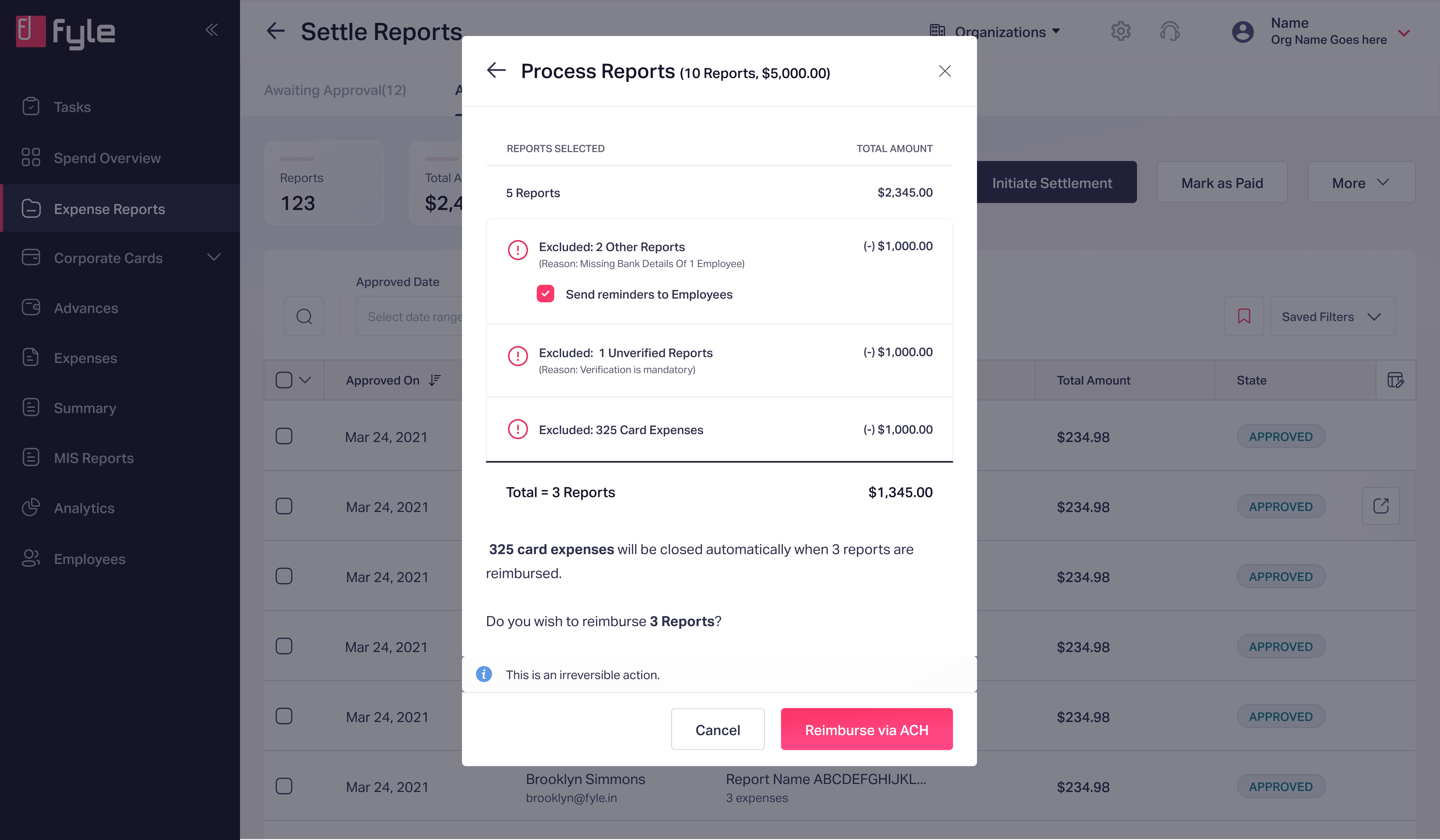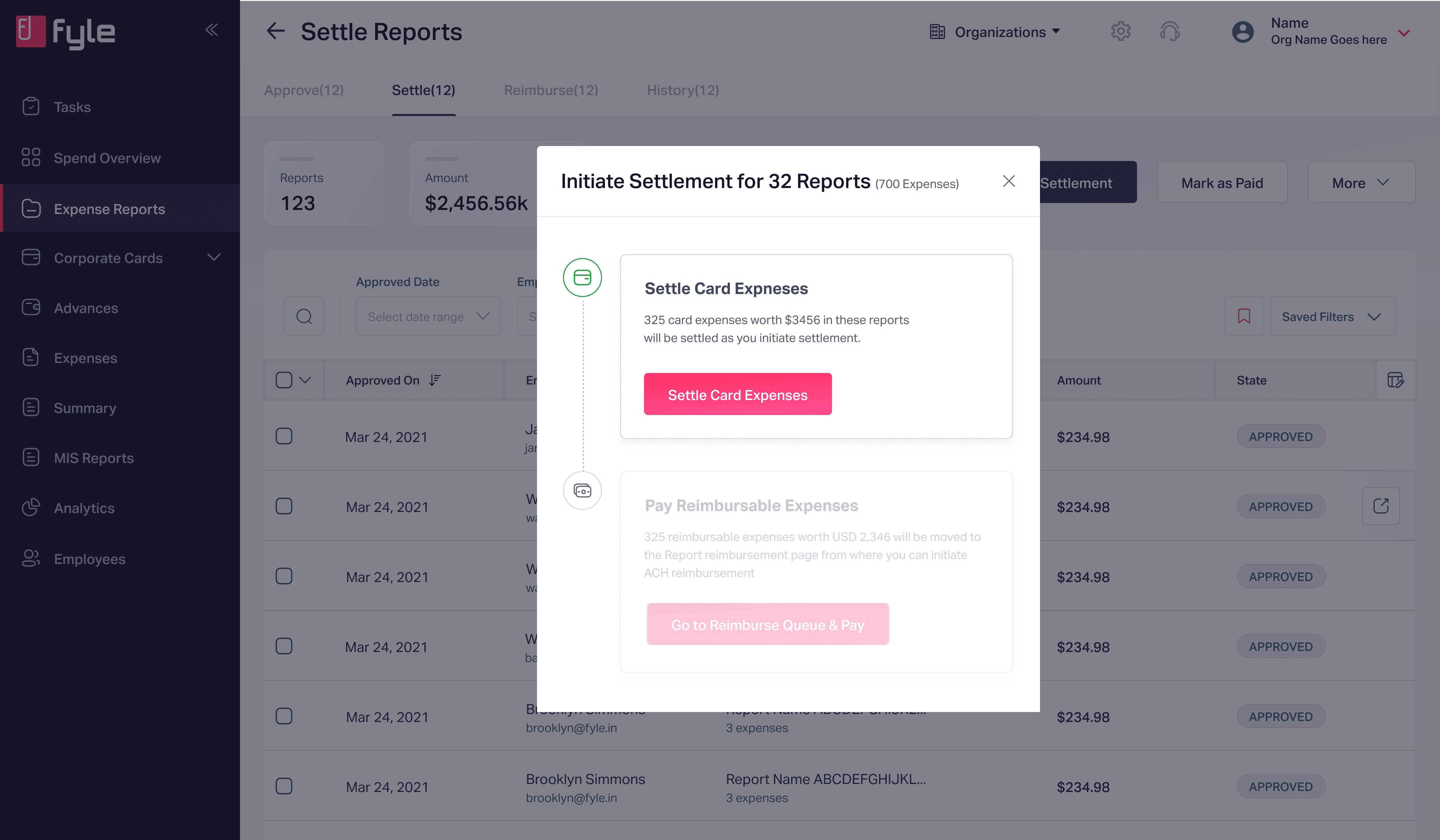 Primarily, a report can contain two types of expenses: expenses incurred via company card and expenses made using a personal card. While a part of the report requires reimbursement, the card expenses journey should ideally end as soon as the report is approved.