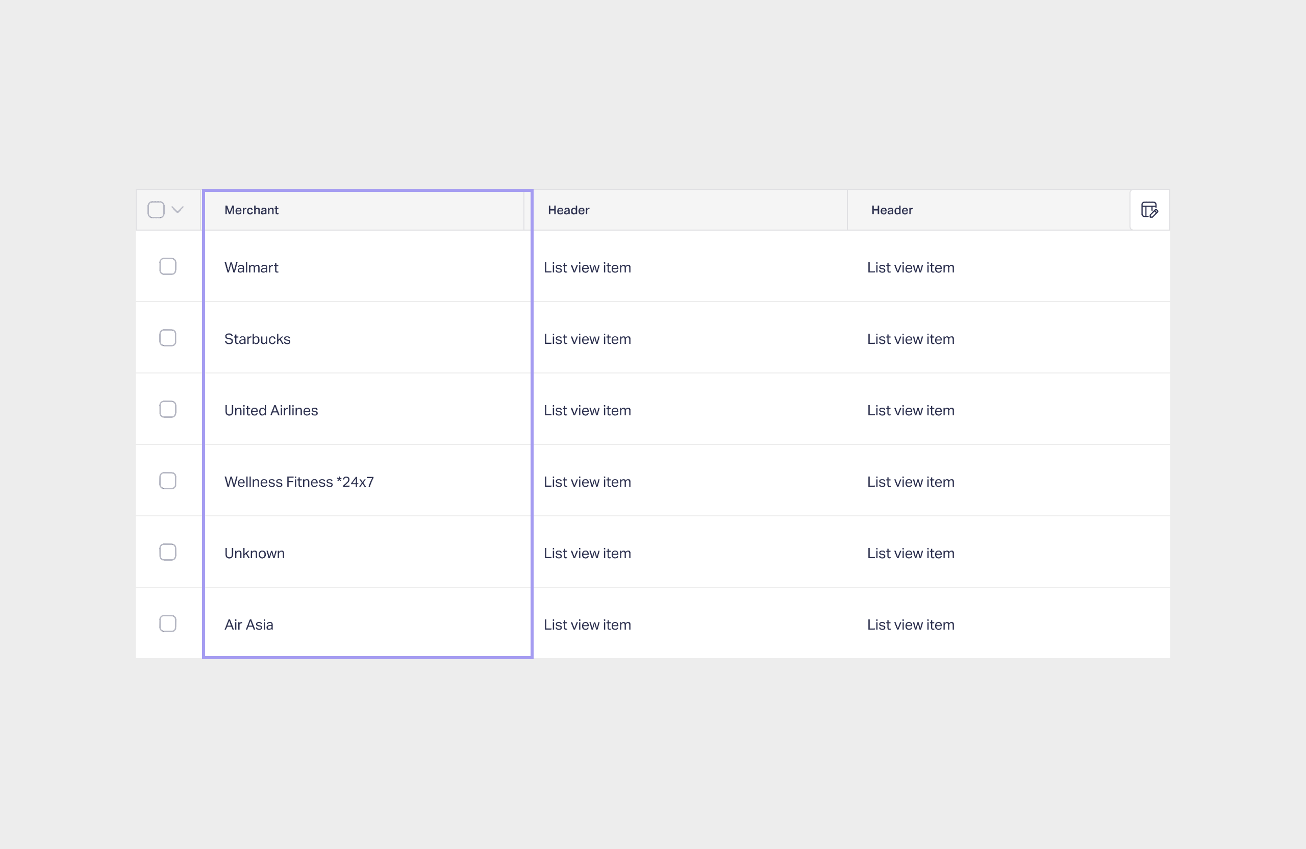 We approached the data grid column wise.
